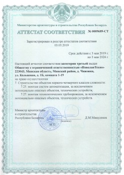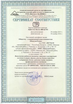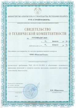 Система производственного контроля соответствует всем необходимым требованиям при производстве, выполнении работ, что так же подтверждено свидетельством о технической компетентности.