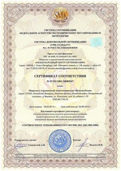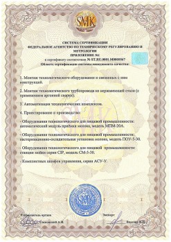 При разработке оборудования наша компания ставила целью создать продукт легко интегрируемый в системы менеджмента ISO9001 и ISO22000. Для этого на предприятии внедрена система менеджмента качества ISO9001-2011, что подтверждается соответствующими сертификатами.