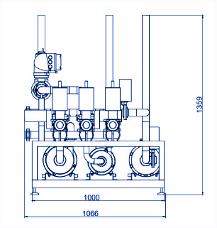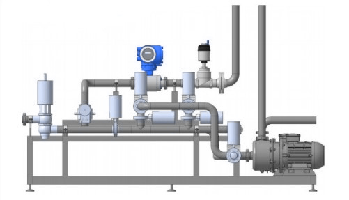 Узел внесения и растворения сухих компонентов предназначен для внесения сухих компонентов, таких как сахар, сухое молоко, стабилизаторы, в молочную основу, подогрева и охлаждения полученной смеси в потоке на пластинчатых теплообменных аппаратах, а также для диспергирования данной смеси.